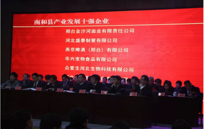 会议期间,颁发了多个奖项,各获奖企业代表纷纷上台领奖,县委副书记、政府县长韩明智同志为各企业颁奖。大会取得圆满成功,与会企业深受鼓舞。华兴宠物食品有限公司荣获”南和县产业发展十强企业“称号。