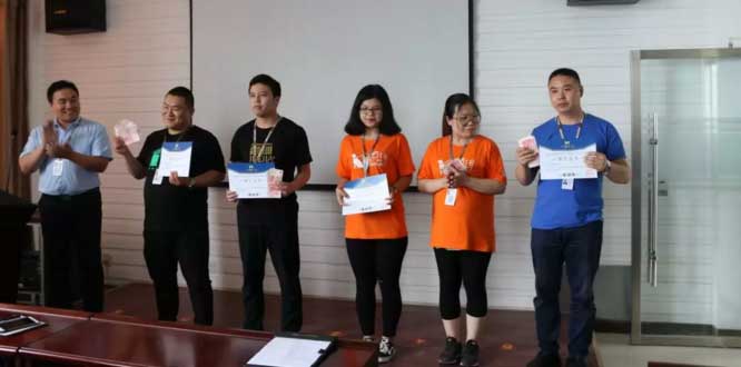 2018年5月18日下午华兴宠物食品1—4月份销售团队评比表彰大会正式开始,获奖的销售团队上台领取荣誉证书及奖金。