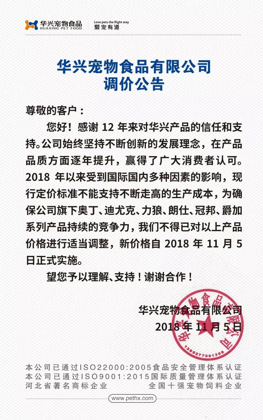 调价公告
