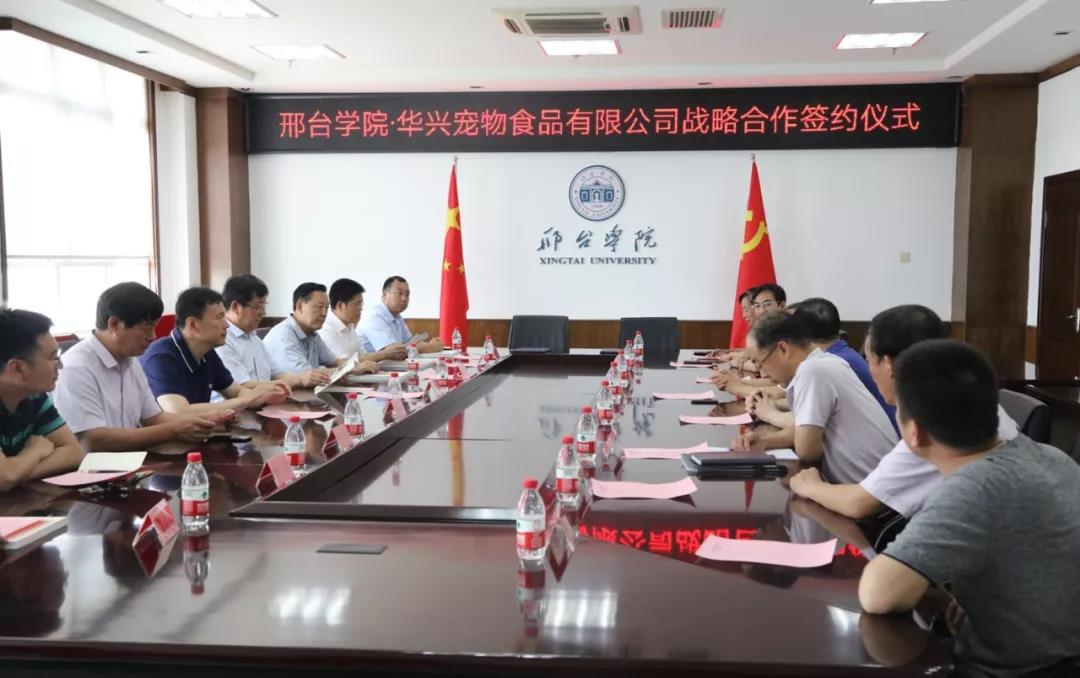 7月3日,南和县委常委、组织部长李中伏,南和县委常委、统战部长樊振宇以及南和县人大、政协、农业农村局等相关领导与华兴宠物食品有限公司总经理冀叶军一行一起前往邢台学院参加邢台学院·华兴宠物食品有限公司战略合作签约仪式。邢台学院校长蔡振禹与校方其他主要领导成员参与了合作签约仪式。