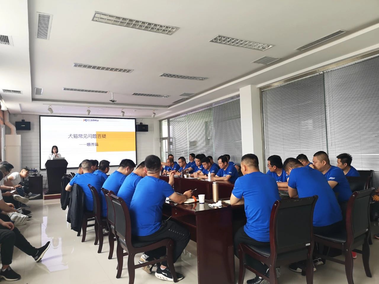 培训会从“宠物营养及喂养答疑”,“品控质检工作讲解”,“品牌文化”和“企业文化”四方面进行了专业的课题讲解。在培训期间,全体区域业务经理认真听讲,专心记笔记,并积极与老师交流沟通。在学习中发现自己的问题,并解决问题,进一步提升自己,以期为客户提供更加专业的服务而不断地提升自己。